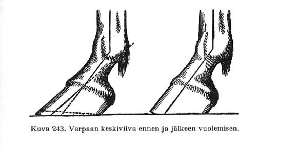 että virheelliset liikuntatavat ja niistä johtuva hivutus tai takominen tällöin havaitaan, mutta vielä tärkeämpää on, että vanha ontuma jo ennen kengittämistä tulee huomatuksi, jotta kengittäjä heti voi siitä ilmoittaa omistajalle ja samalla koettaa kengityksen avulla poistaa ontumisen tai ainakin lieventää sitä. Koska ontumien tunteminen ja parantaminen kuitenkin on sangen vaikeaa, pitää kengityssepän, jolta tietenkin puuttuu tähän tarpeellinen koulutus, kehoittaa omistajaa kääntymään eläinlääkärin puoleen vian parantamiseksi.Käyden taluttaminen osoittaa, kuinka hevonen vie jalkansa ja kavionsa eteenpäin sekä astuuko se tasan kavioilleen. Hevosta talutettaessa käyden suoraan poispäin sekä takaisin tarkastajaa kohti tulevat nimenomaan askeleen epäsäännöllisyydet selvästi näkyviin ja ennen kaikkea voi tarkastaja todeta , missä määrin hevonen astuu epätasaisesti kavioilleen. Säännöllisen asennon hevoselle on ominaista, että sen astuessa kavion koko alapinta tasan koskettaa maata. Jos sitä vastoin hevosen astuessa joko ulko- tai sisäseinämä ensin koskettaa maata, osoittaa tämä, että ko. seinämä on vuoltaessa jätetty liian korkeaksi, josta seurauksena on ollut virheellinen jalan tai varpaan asento.